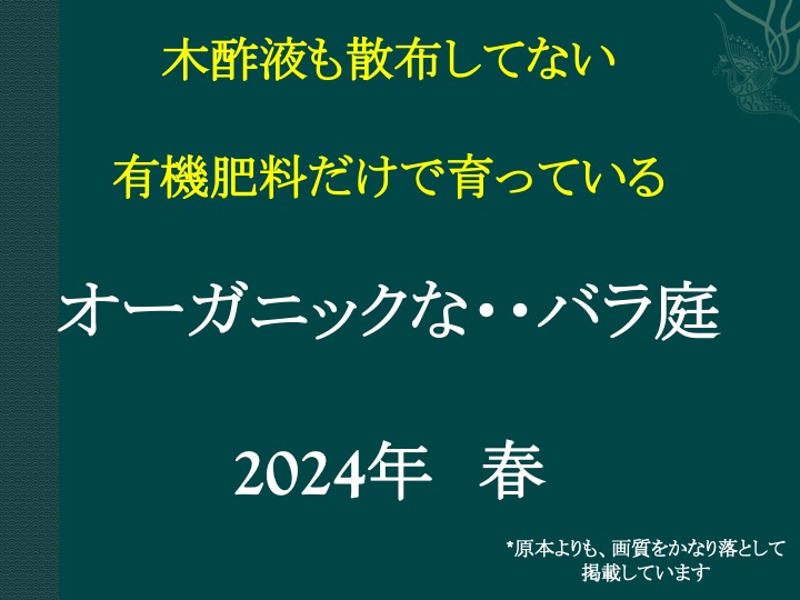 そんなバラ庭は・・木酢液も使わず・・無農薬で・・・有機肥料のみで・・・時にはテッポウムシ 被害で弱ったり、枯れたり、などの困難を・・・克服しながら・・・25年間も成長を続けています。