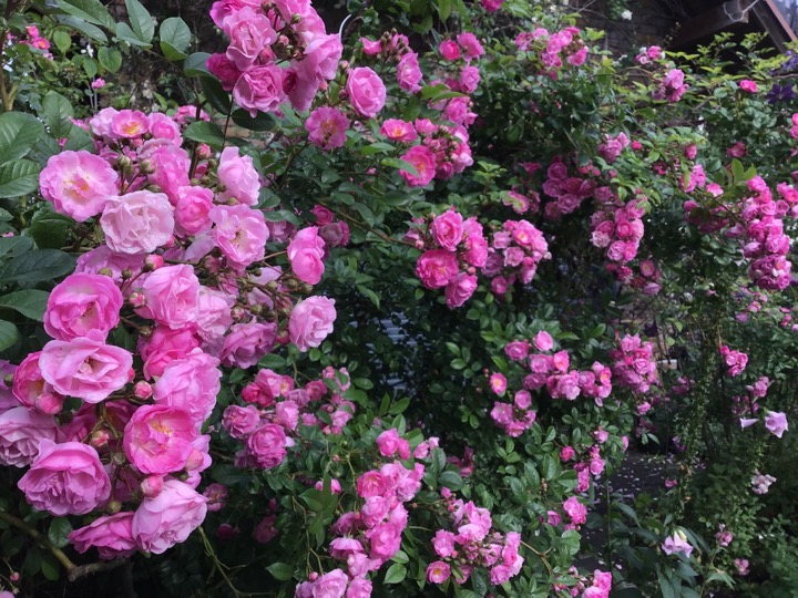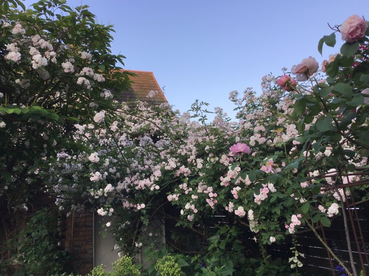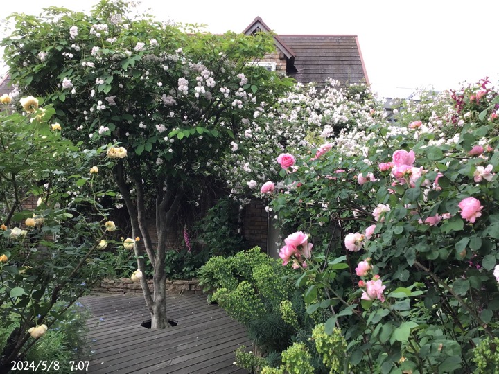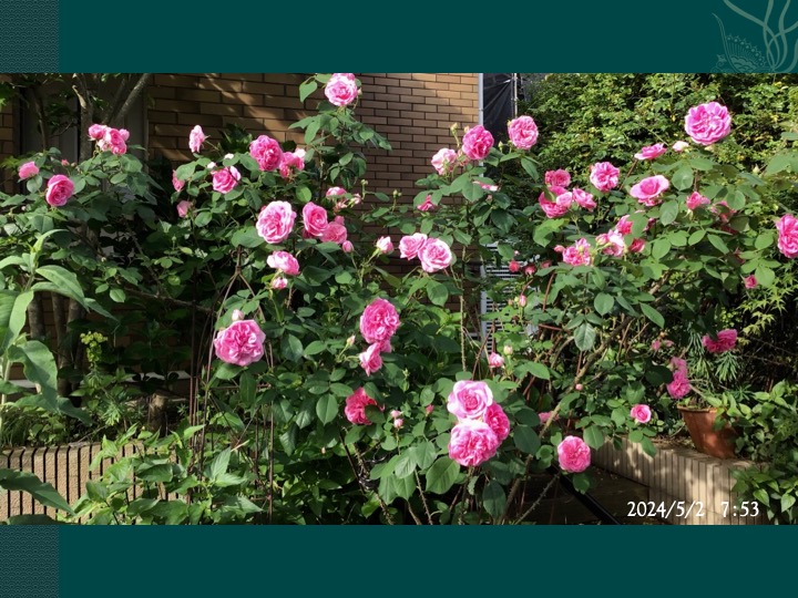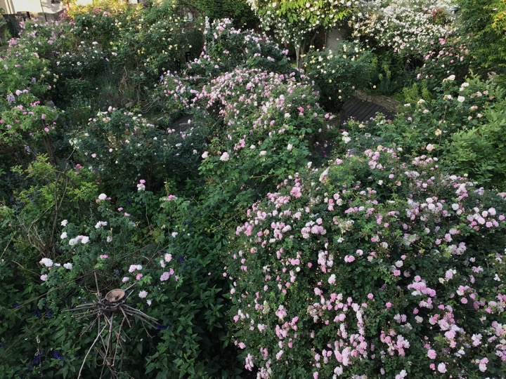“ファンタン・ラトゥール“は、英国で感動し、植えて22年経過。庭の中心に。ほとんど棘なしで強香。