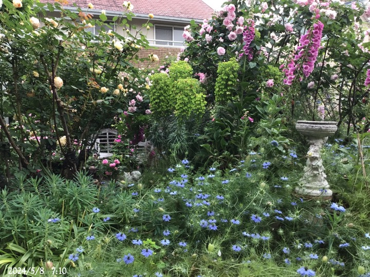 今日も、バラやブルーベリーのイラガ幼虫を集団で見つけ(葉の白斑が目印)一網打尽にしたり、つぼみの花びらや新芽を食べるバラゾウムシや、葉を集団で食べるチューレンジバチの幼虫や、つぼみや花びらを食べるマメコガネムシなどを退治したり、カミキリムシ成虫がバラの枝や葉の上にいないかどうかのパトロールをこまめにしたり、水やりも必要だし、梅雨前のこの時期は非常に忙しい。
