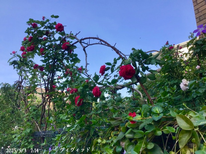 赤色のクレマチスが特に華やかさを演出。魂がクラクラしたのを覚えています。