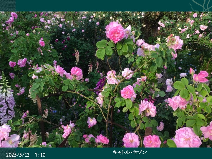 中央のピンクは10年ぶりに、この場所に蘇ったシャポー・ドウ・ナポレオン。来年が楽しみです。