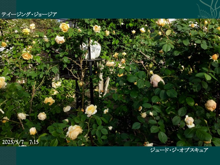 昨年は、テッポウムシ被害のため、25年生育で庭遊びの仲間だった“ブレイリー No.2”、“セルシアナ”がついに枯れてしまい、同じく25年生育の“ジャック・カルティエ”や15年ものの“マダム・プランテイエ”も1/10が枯れる瀕死の重傷を負い、25年生育の“ジュード・ジ・オブスキュア”も1/3が枯れる重傷を負いました。