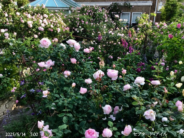 “セプタード・アイル”ミルラの香りで連続咲き。26年前から「無農薬バラ育て」研究に貢献。感謝です。